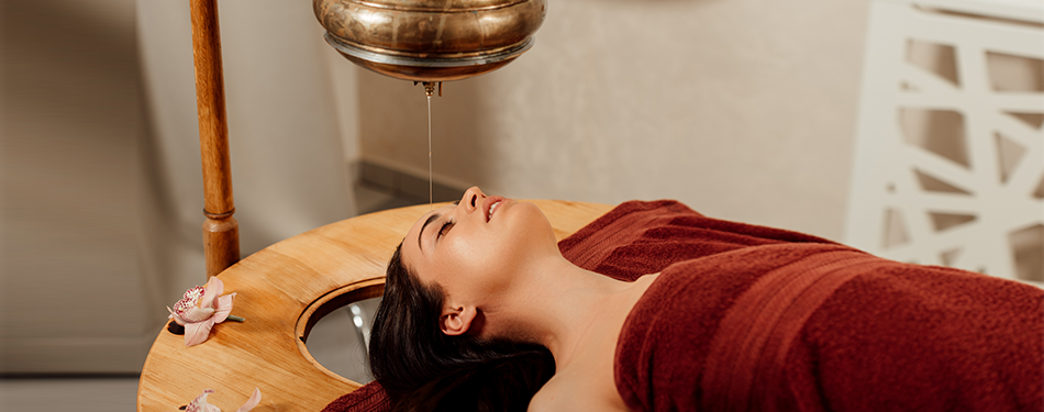Dhara is a specialised Ayurvedic treatment method where a continuous stream of medicated warm oil, herbal decoctions, medicated milk, or buttermilk is poured onto the forehead for 35 to 45 minutes. This procedure often induces a mental state similar to a trance, which promotes profound relaxation of the mind and body. It deeply relaxes and revitalises the central nervous system. Shirodhara yields the best results when taken after an Abhyangam.