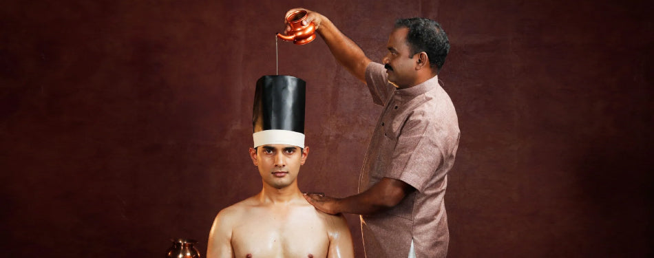 This is the most important of all external uses of Snehana (oil application). Certain lukewarm Ayurvedic/herbal oils are poured into a cap fitted on the head for 15 to 60 minutes per day according to the patient's conditions for a period of 7 days. Its effects are marvellous in neuralgia, hemicrania, optic atrophy, otalgia, deafness, facial paralysis, and all diseases affecting the cranial nerves.